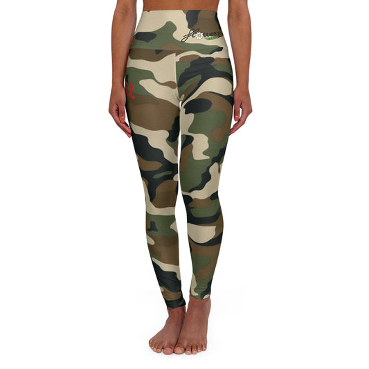 High Waisted Yoga Leggings With Flowerz logo.